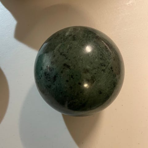 Marmorskulptur med spejle, Marmor, 15 år gl., Marmorcylinder med nyt rundt spejl og antik ovalt spejl
