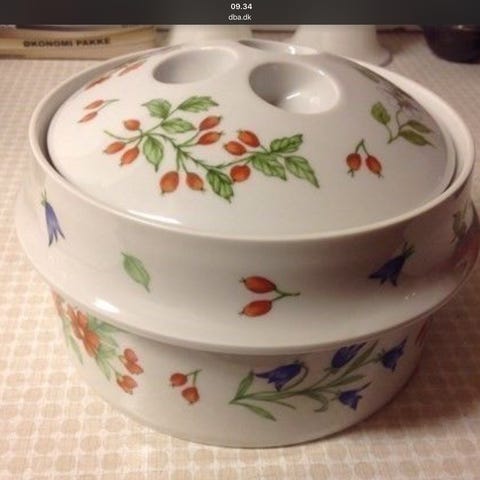 Porcelæn, Ældre Hvid Skål Skåle Pynt Frugtskål med Blomster Sender gerne
