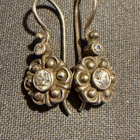Øreringe, sølv, Vintage, Smukke vintageøreringe i sølvfiligran med en kugle af lys rav i hver. Stemplet 925 for sterlingsølv på hver lås.