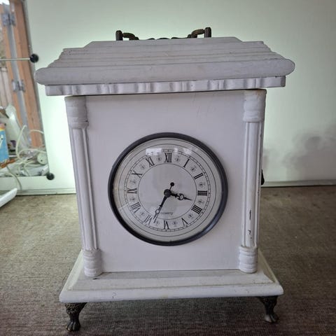 Se standen på billederne, jeg synes de har passet på uret da jeg arvede den for allerede mange år siden, siden har den bare stået det samme sted ovenpå et skab.