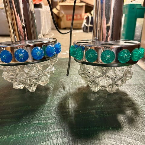 Lampen giver et flot klart lys. Afhentning foretrækkes absolut da den skal skilles ad hvis der skal pakkes og sendes, da det tunge glas er ilagt kroppen og er ikke permanent fikseret