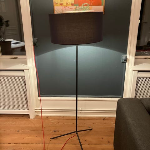 Gulvlampe, Bolia, Smuk standerlampe fra Bolia med ikea skærm. Lysdæmper kan styres med foden.