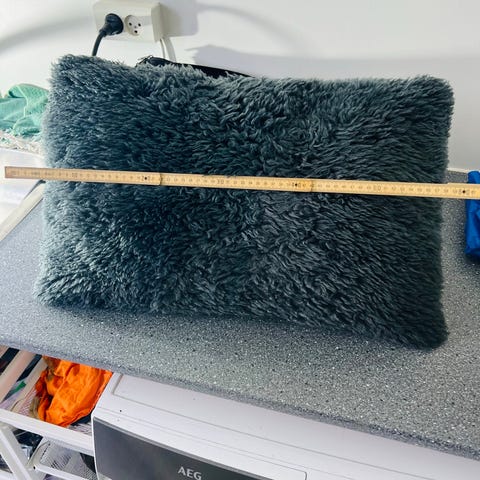 Pyntepude i uldstof, Pyntepude i uldstof, i lilla, grå og hvid.