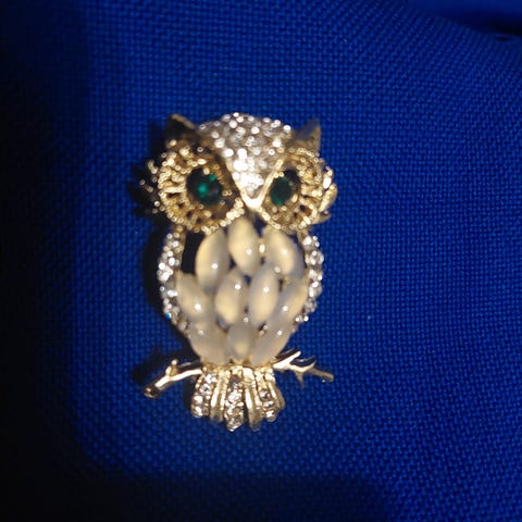 bijouteri, En søde glitrende ugle på en gren er denne elegante broche – perfekt til en ensfarvet top, kjole eller jakke.