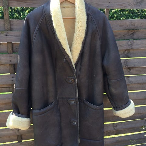 Smuk cremefarvet rulamsfrakke i luksuriøs shearling fra Lovechild. Frakken er næsten ubrugt og fremstår derfor i rigtig flot stand – blød, varm og samtidig meget let at bære.
