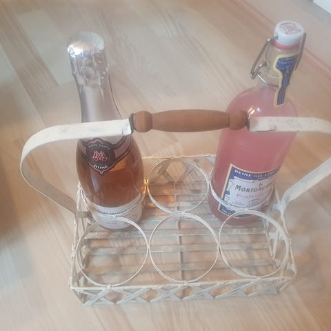 Flettet flaskeholder, Fin flettet flaskeholder med plads til 4 vinflasker. Mål 23x23 H 22 / 40 cm Den koster 75 kr. #flet #flettetflaskeholder #flaskeholder #sommerhusliv # kolonihaveliv #bohostyle #boholiving #bohodecor