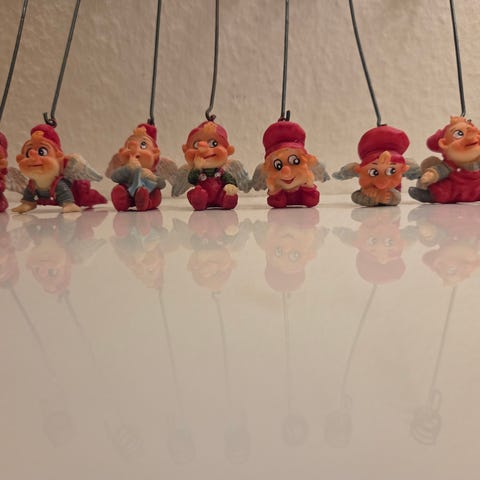 3 små figurer, 7-7,5 cm høje, a 25 kr pr stk