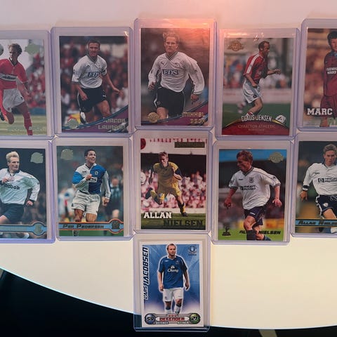Samlekort, Fodboldkort, Fodbold kort af det spillere fra det danske fodboldlandshold. Bl.a. kort med Nicklas Bendtner, Daniel Agger, Christian Eriksen, Jon Dahl Tomasson, Simon Kjær, Yussuf Poulsen, Kasper Schmeichel. Prisen er for alle kort.