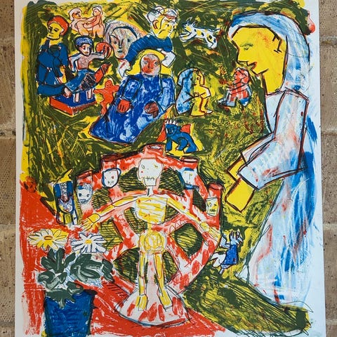 Originalt litografi, Niels Reumert, motiv: Famlieportræt