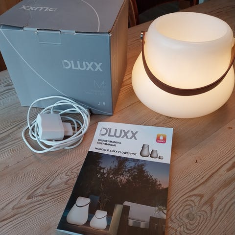 Flower pot , , DLUXX, DLUXX med lyd og lys via app med plads til blomster ,, isterninger eller lign, ved ikke så meget om den,,DEN ER NY OG UBRUGT, Prøv at læs det der er på det ene foto ,, ellers håber jeg at kunne svare på spørgsmål. Sender gerne,,