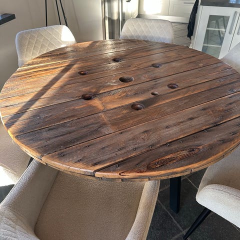 Spisebord, Kabeltromle , b: 140, Super praktisk rundt spisebord med plads op til 8-9 personer