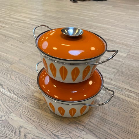 Emalje gryder, Cathrineholm, Den sorte Cathrineholm, den hvide kender jeg ikke mærket på. Den hvide i god stand, den sorte i mindre god stand. Se billeder. Sælges uden låg.