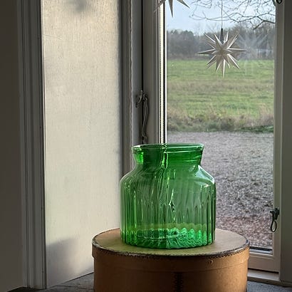 glaskrukke lågkrukke vintageglas glasvase vintagevase blomstervase krukke marmor