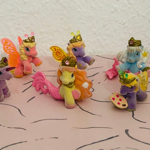 Lille fin fedronning, i plastik og blik fra 1953. Kjolen er hvid med glimmer, nøglen medfølger og virker som den skal. Æsken har lidt slitage men er i overvejende pæn stand.