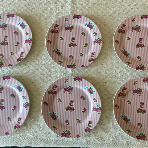 Billeder er jo ikke med mine tallerkener, ene og alene for at skabe lidt hyggestemning. Jeg kan sende på købers regning med GLS/pakkeshop. PS! Det er lysindfald og ikke hvide pletter, der er i bunden af tallerkener. Passer lige til fastelavnsbollerne også...