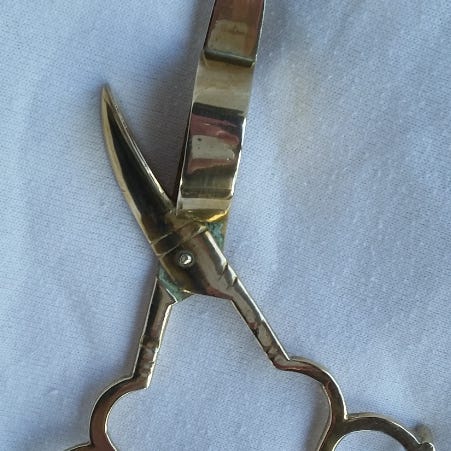 Lysesakse, Messing, Fine gamle lysesakse i messing. Ca. 14 cm lange. Pris pr. stk. 350,- kr.