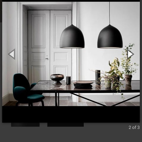 Elegant og minimalistisk pendel fra Fritz Hansen. Suspence pendlen er designet af designduoen GamFratesi, som har fundet inspiration til lampeserien i det at omsætte en bevægelse til en fysisk form. Lampens form er blevet til ved et blødt træk, der visuelt såvel som fysisk forbinder ledningen med skærmen, som var de bestående af én del. Lampen har en såkaldt infinity diffuser, der forhindrer lyskilden i at blænde, samtidig med at der skabes en elegant optisk illusion.