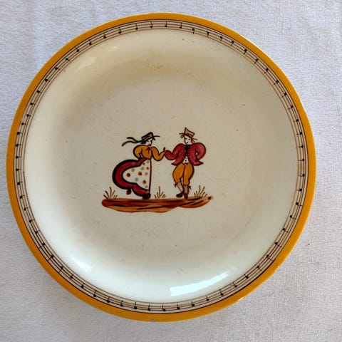 Stentøj, Spisetallerken, Knabstrup, 1 stk. flad tallerken Ø: 25,5 cm. Grå nistret tallerken med brun kant. Smal brun cirkel omkring tallerknens bund. Tallerknens bagside er ikke glaseret.