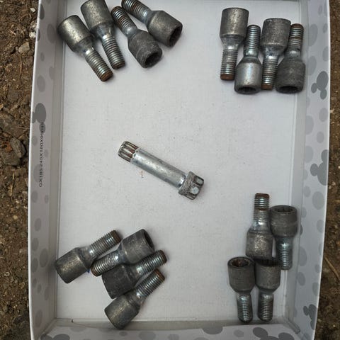 20 stykker hjulbolte, De passer til Peugeot 308 SW, 5 bolte, jeg tror de passer til alle Peugeot og citroen. Samlet pris 175 kr., hjulbolte passer til Fiat 500, Punto, jeg tror passer til panda, Bravo, Doblo,Idea, Linea,, Fiorino, marea, Stilo, Qubo, Alfa Romeo, 147,156, mito, mm, Ford Ka, opel Combo, Peugeot Bipper,, lancia