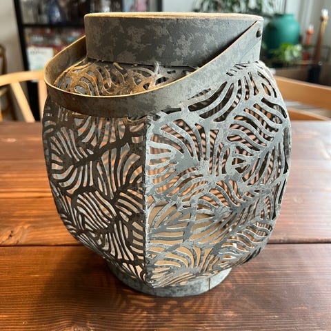Lanterne med blomster mønster i zink, Butik In Bo, Flot lanterne i antik zink