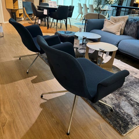 Bent Hansen, stol, Primum, Bent Hansen Primum stol i stof og med armlæn og drejestel.