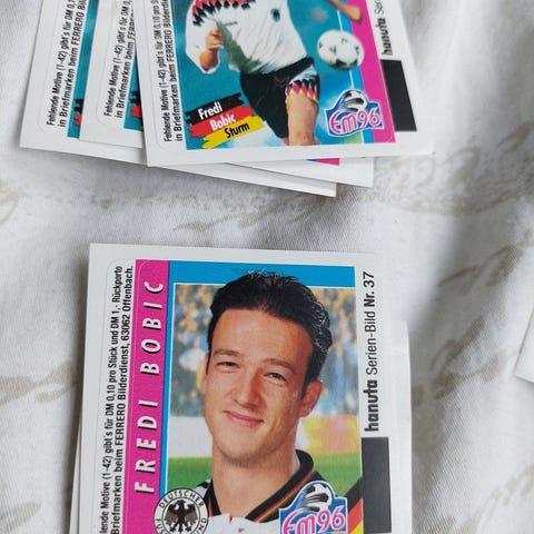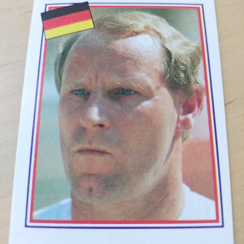 Klistermærke fra 90´erne med fodboldstjernen Jürgen Klinsmann.