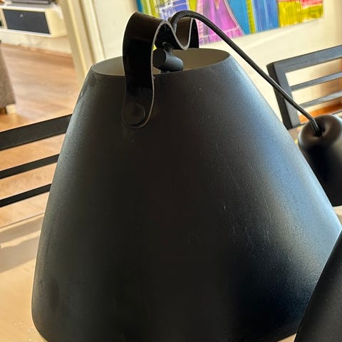 Vi sælger den, da vi har fået nyt møblement, og lampen ikke længere passer ind.