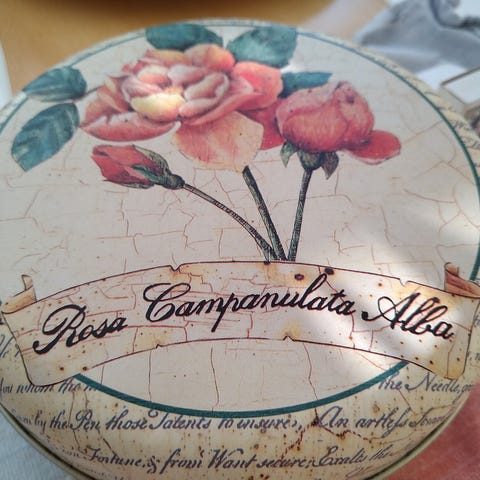 Dåser, Super sød og romatisk dåse med masser af hjerter og engle og St. Valentine's greetings.