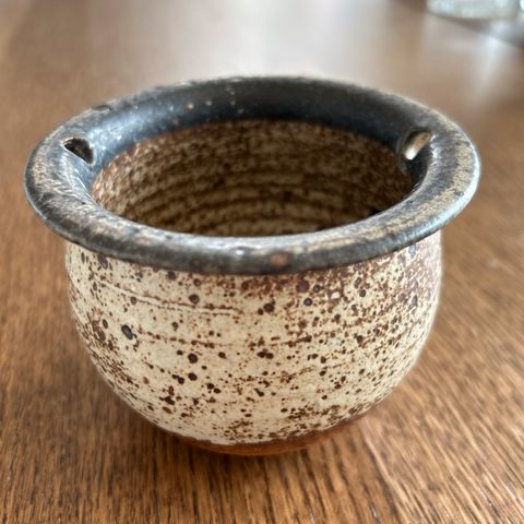 Skøn nyere ler, keramik grydeskål med ører/hanke. Så fin med mat streg gennem det glasserede keramik.