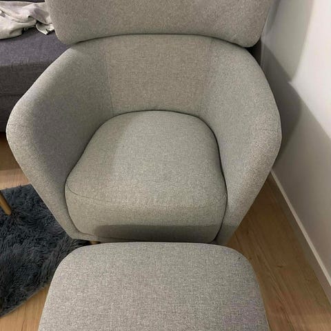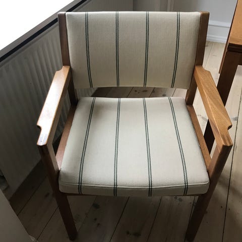 Christian Hvidt, " Lounge Chair ", Stol, - i pæn og god , men brugt stand !! textil hel og ren !,- alle limninger ( samlinger er helt fine ) God side comfort og har jo extra brede...