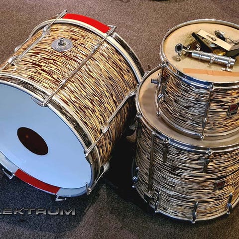 Er begyndt at foliere og du kan få resten af folien med eller pille det af, men det bliver ret flot med folie. Kuffert-stortromme er hjemmelavet og stikker du din mikrofon i hullet og drejer 2 gange på mixeren, så lyder den som en ganske alm stortromme men fylder ingenting i forhold til.