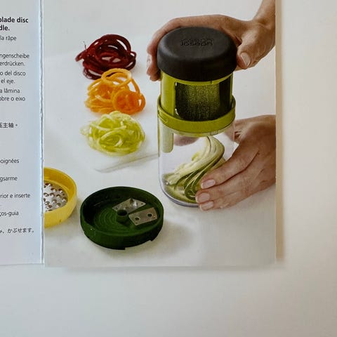 Skræller, Joseph Joseph, Med Tri-Peeler fra Joseph Joseph får du tre skrællere i ét smart design. Skrælleren har tre klinger af rustfrit stål - en lige klinge, et julienne-jern og en klinge til blød frugt – på hver deres side af en trekant. Du kan nemt skifte mellem de forskellige klinger ved at trykke på den store knap, hvorefter du kan fjerne og rotere den trekantede hovedenhed.