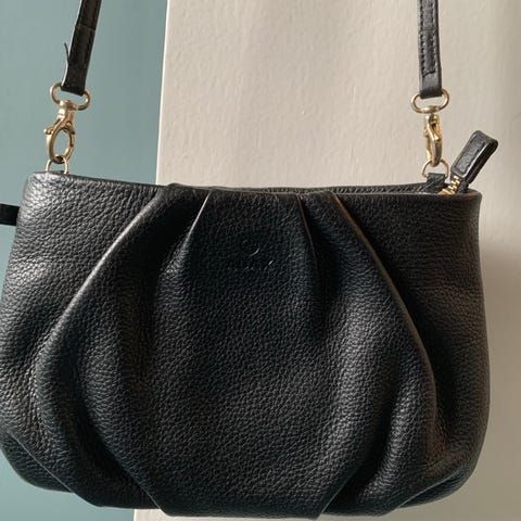 Anden håndtaske, Adax, læder, Velholdt lædertaske fra ADAX. Der er ganske få brugsspor, er rigtig pæn, også på hanken og indeni. Dog en lille ridse i siden, som ses på andensidste billede ved pilen. Ikke-ryger taske ! Mål ca 340 x 30 cm på selve tasken.