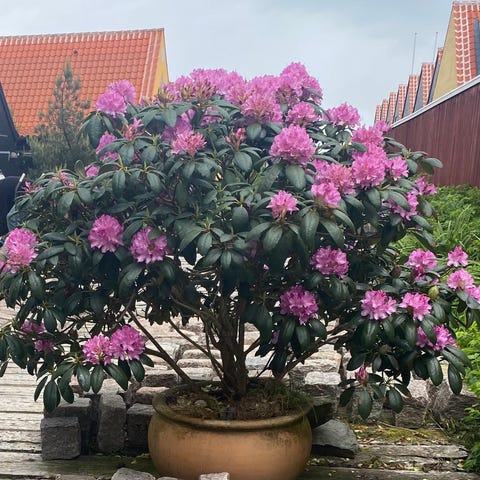 Rhododendron i stor krukke / lilla blomster ( se foto)