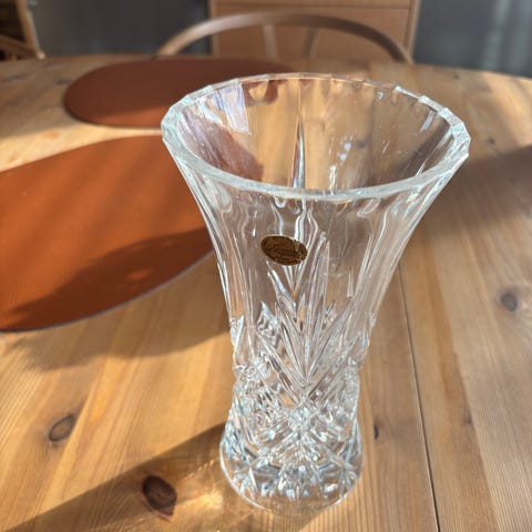 Vasen måler 23 cm i højden og vejer lidt over 2 kilo.