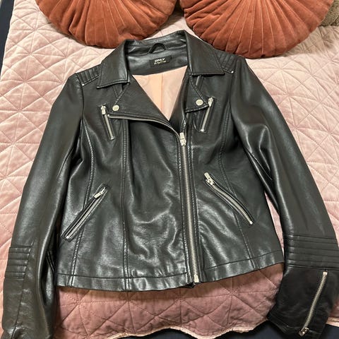 Helt ny sort læderjakke med lynlås og 2 lynlås lommer fra Qushi.