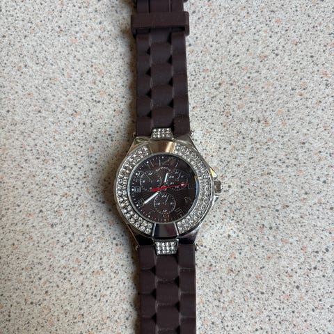 Dameur, EveMonCrois, Som nyt EVE MON CROIS ur. Japansk urværk, blød sort silikone rem. Pyntet med funklende similisten. Fedt ur som accessoires til dit outfit. Har været på få gange...dog ligget et par år, så skal have nyt batteri - derfor billig pris