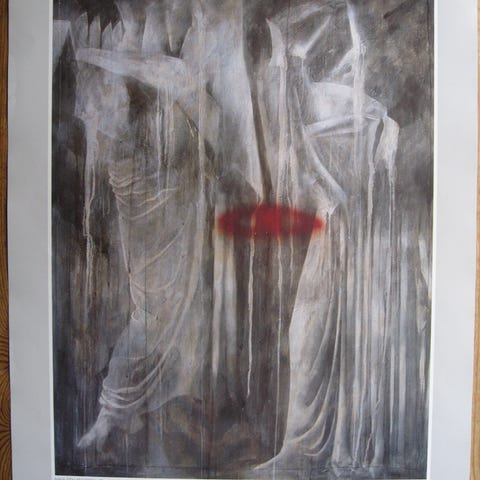 Plakaten har været sat op med tegnestifter og har små brugsspor derefter. Se foto.