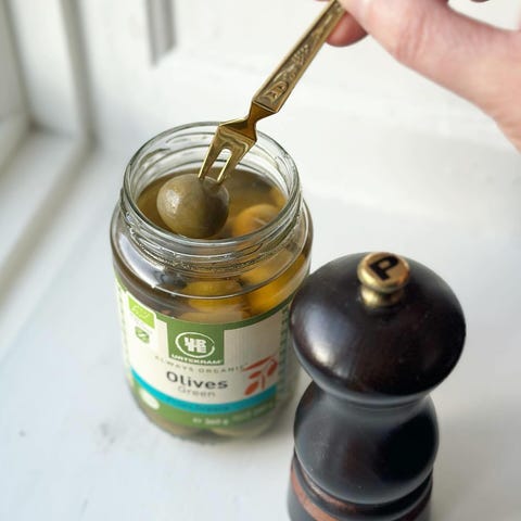 Fremstillet i rustfrit stål med skaft af ben.