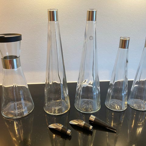 3 stk som nye, har org æsker til 2 af dem, á 50 kr. 1 stk har et ganske lille flad afslag på inder kant, ses næsten ikke (foto 4) 20 kr.