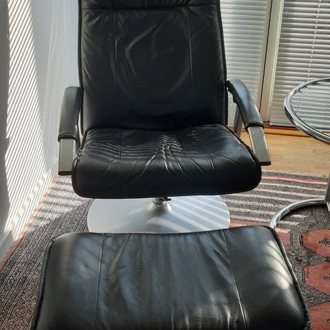 Hvilestol, tekstillæder, Mørkholt, flagermusstolen mørkholt