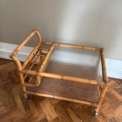 Rullebord med glasplade og bambusflet hylde.. fin stand, kun stået inde..