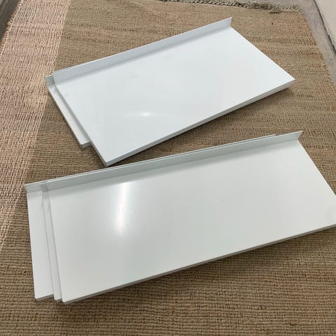 Tilbehør til reol, Porsa, b: 80 d: 30 h: 4, Til reolsystemet PORSA sælges 6 stk. hvide pulverlakerede stålhylder med 4 cm. høj bagkant