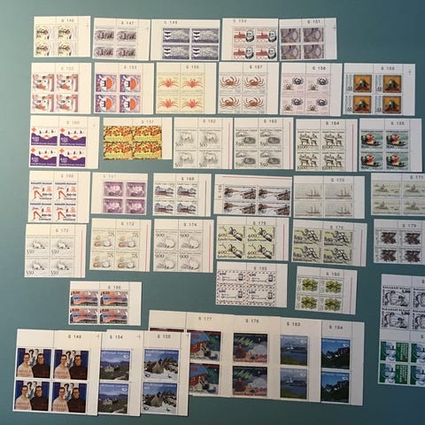 Grønland, postfrisk, Øvre marginal fireblokke, Grønland, postfrisk, Marginal fireblok - se specifikation i vedhæftet billede.