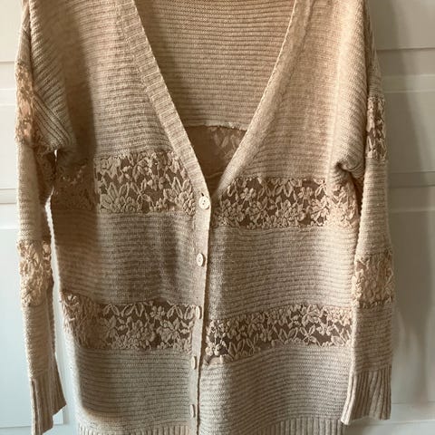Jordgrøn cardigan i str. M. Pæn og velholdt
