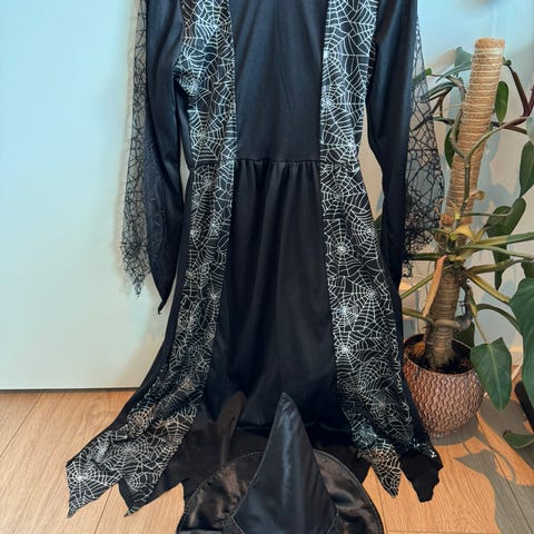 Udklædningstøj, Hekse hat, Ingen, str. 128, Smuk hekse hat med en edderkop på hatten, fra dyr og røgfri hjem.