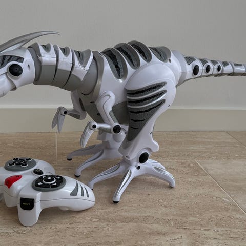 Roboraptoren fra WowWee er en fjernstyret dinosaur, der kan styres med en controller. Den kan gå frem, tilbage, højre eller venstre. Derudover kan den også vifte med halen, rykke nakken og lave dino lyde. Et rigtig sjovt legetøj for de dinointeresserede. Raptoren er 80 cm. fra hoved til hale. Nypris ca. 1.000 kr.