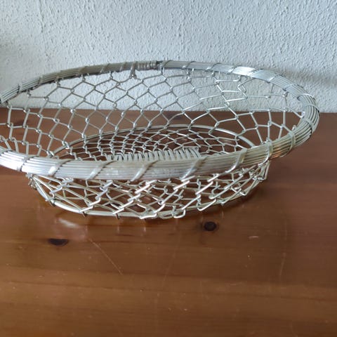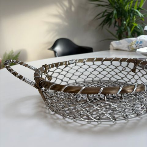 Metalkurv m fletbund, Stor flot metalkurv med metal og flet i bund.