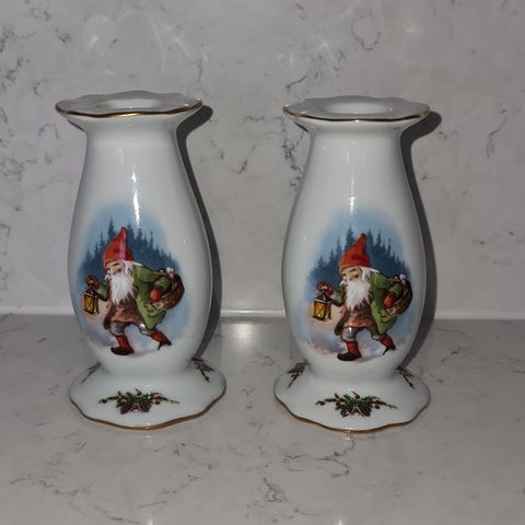 Porcelæn, Julestage Med Nisse, Firkløveren, Fin lysestage designet af Lars Carlson for Firkløveren.