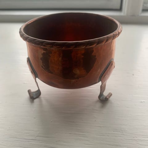Askebæger, Massivt teak askebæger med kobber indsats 15,5x15,5 cm cm kr 250,-. Fragten aftales individuelt!